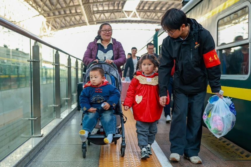 为更好服务旅客,乘务员提前接受系统培训,车厢内增设团报团刊“读书角”、便携式移动充电站、“爱心百宝箱”等。行程中,罗良伟向孩子们讲解铁路安全知识、发放宣传册。新春将至,列车内布置窗花、对联,组织猜灯谜、送福字等活动,节日氛围浓厚。临近终点,乘客分享感动,“共青团号”承载青春活力与担当,传递家的期盼与温情,温暖乘客归乡之旅。(李舜)